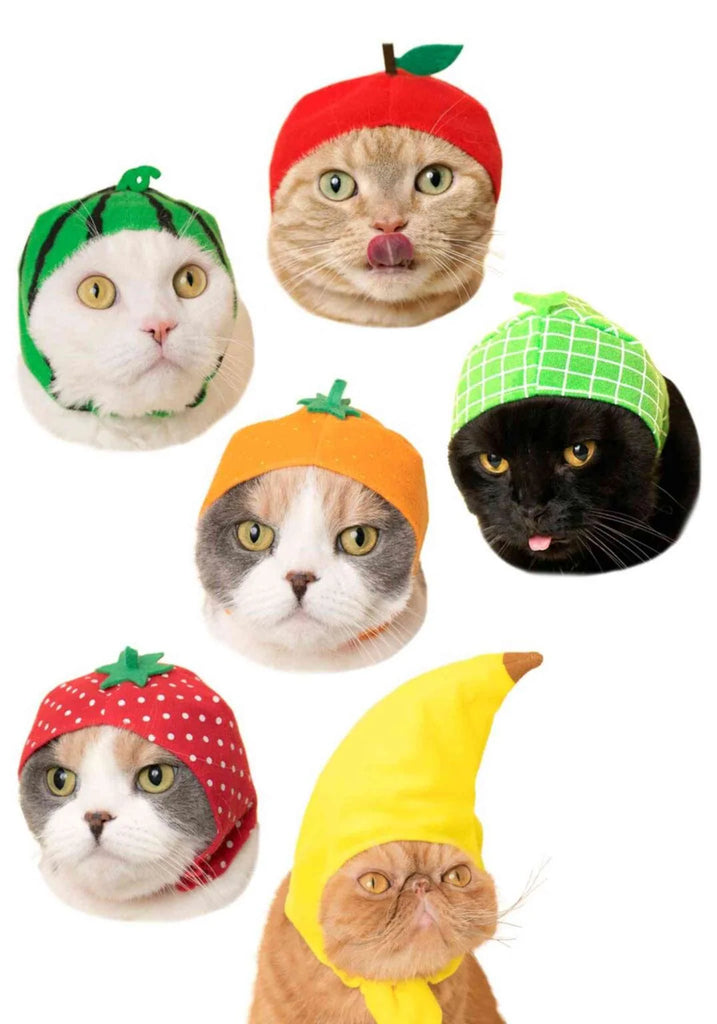 Each box contains ONE fruit cat cap. Which one will your cat get?