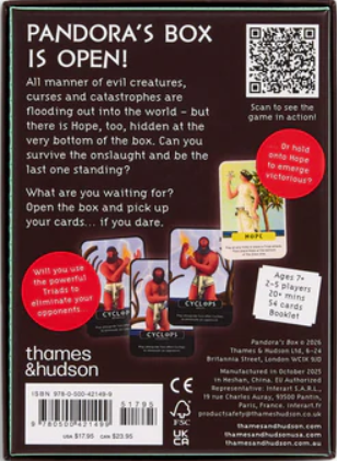 Pandora’s Box includes a 56-page booklet that explains the rules and explores the myth of Pandora, her infamous box, and the characters featured in the game.
