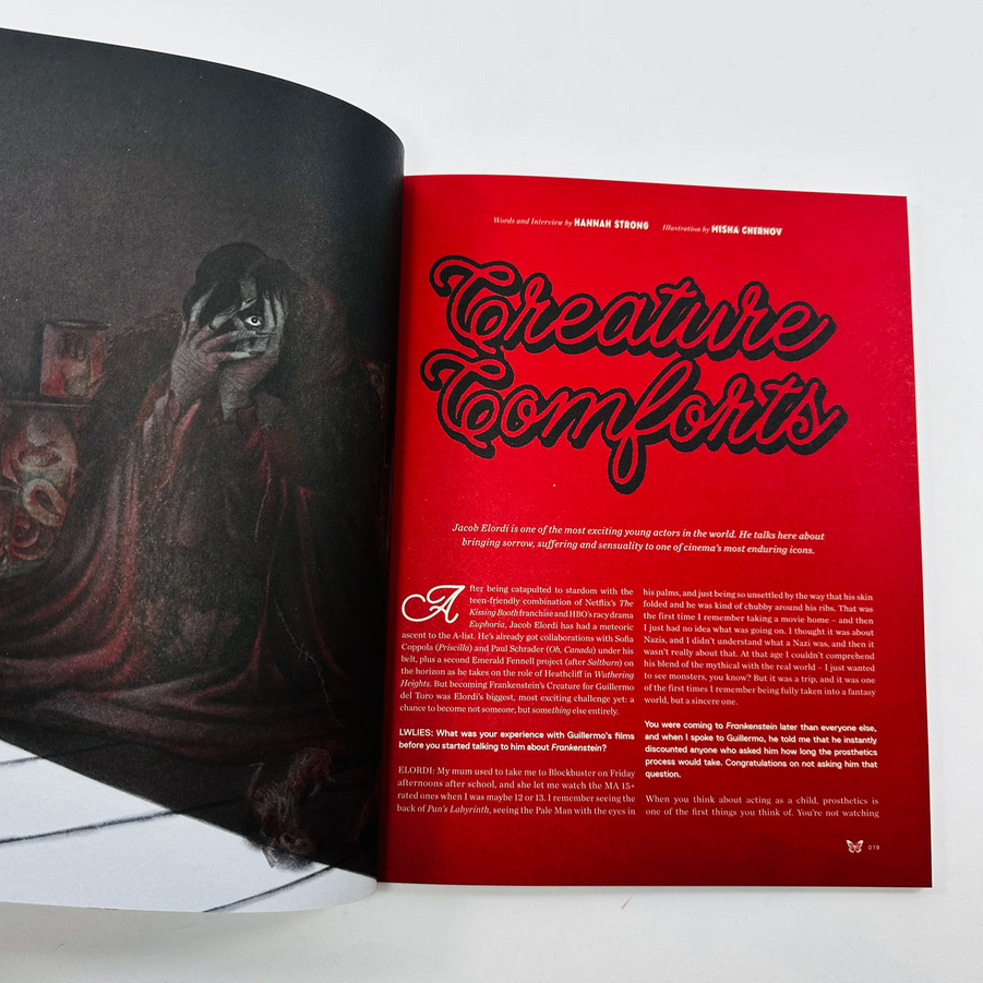 Little White Lies magazine's issue 110 is a "Frankenstein" issue, centered on Guillermo del Toro's new adaptation of the classic novel. It features a cover handmade by the magazine's art director and includes a look at the film starring Oscar Isaac as Victor Frankenstein and Jacob Elordi as the Creature. The issue delves into del Toro's long-held fascination with the story and the new film's exploration of the human need to create and the relationship between creator and creation