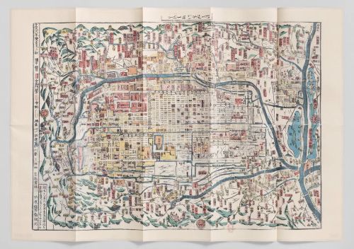 The map provides an accurate view of the 'capital city,' showcasing its orthogonal layout and urban structure, composed of machi—residential blocks measuring 120 metres on each side. Oriented north-south due to the location of the Imperial Palace in the city's north, this map is one of the earliest examples from the golden age of Japanese cartography.