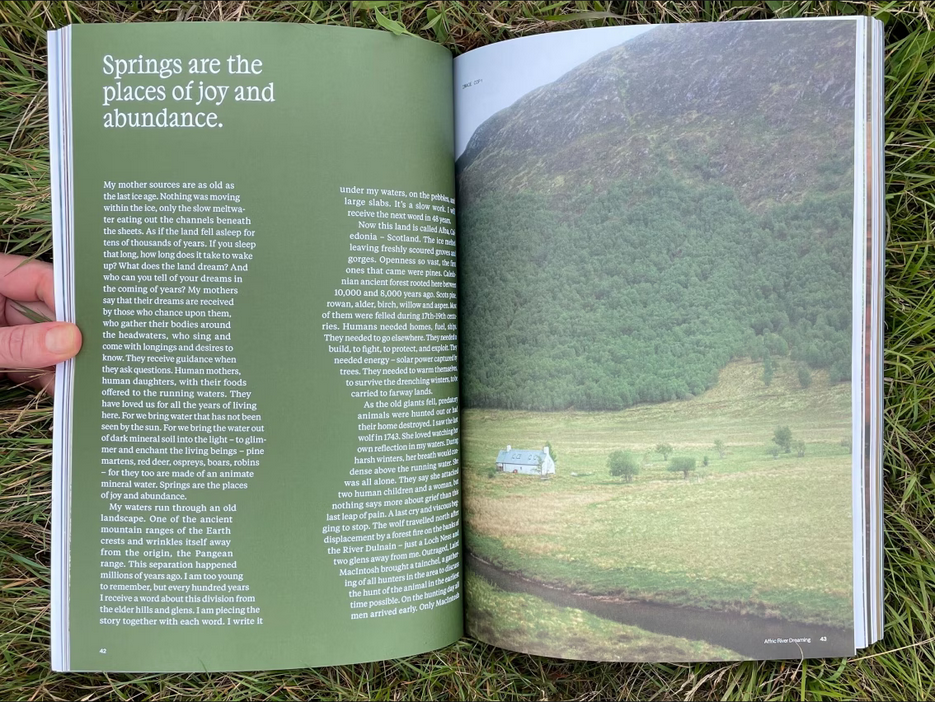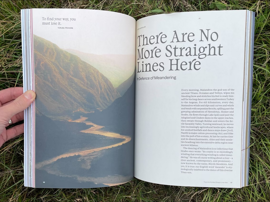 Across 144 pages, you’ll find stories of bioregioning and bioregional weaving, a playful quiz, a river’s voice recalling her watershed since the Ice Age, and reflections on wild swimming as restoration. Bayo Akomolafe offers a poetic etymology of “meandering,” while other voices explore inner transformation, practical toolkits, and regenerative culture across geographies.