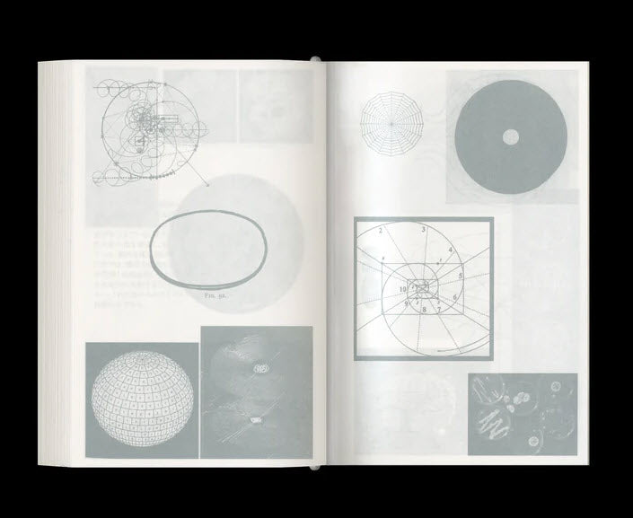 hybrid combinations, lightness, curiosity, and participation. Printed in silver and constructed as a single, circular object, the reader is invited to engage with the book as an open-ended, non-linear experience, and to become a participant in its spirit of enquiry.