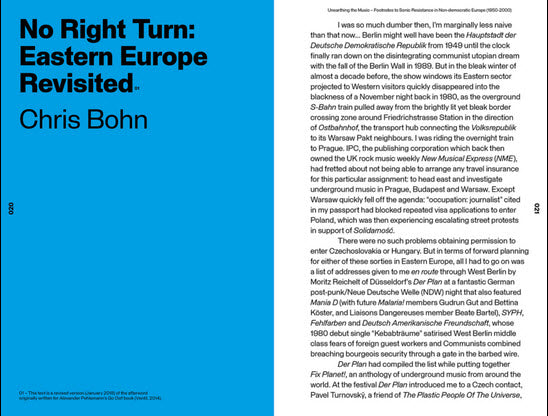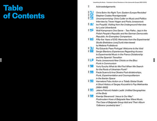Unearthing the Music. Footnotes on Sonic Resistance in Non-democratic Europe 1950–2000 is the final piece of an international project initiated in Portugal, which has established an online archive for experimental underground and protest sounds. This archive encompasses both the "real socialism" of Eastern Europe and the often-overlooked regimes of Spain, Portugal, and the Greek military dictatorship.