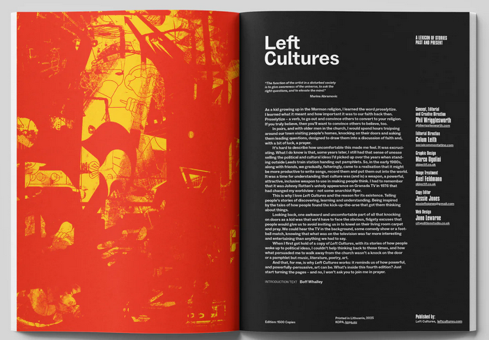 Launched as a one-off, but now three issues deep (and thankfully so), Left Cultures champions voices of the left, ‘whether that be Socialist, Communist, Anarchist or anything in between.’