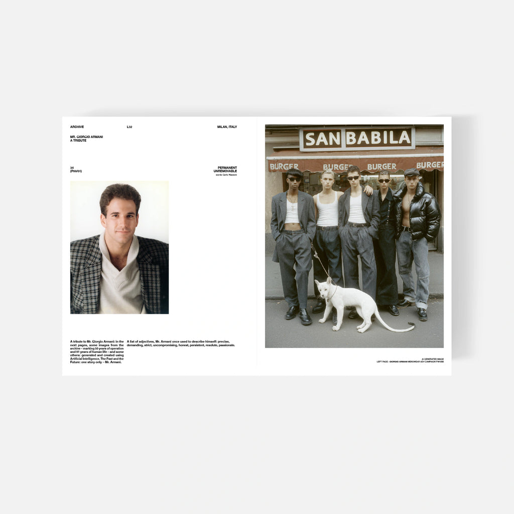 François Berthoud says it straight: he doesn’t want to look at the computer anymore. Olivier Zahm and Annabelle Wearthly melt under the sun until they blur. Naguel Rivero keeps fashion stripped to the bone. Mircea Cantor carves Aleppo soap into shapes that still carry the smell of war. Along the Ganges, Rid Burman photographs the collision of sacred water and floating plastic. A tribute to Mr. Giorgio Armani – archival shots mixed with artificial intelligence