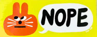 NOPE sticker in orange and yellow made from eco-friendly vinyl. Original illustration by YUK FUN.