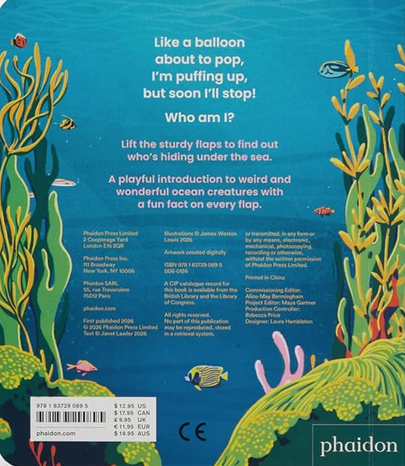 Guess who's hiding under the sea in this lushly illustrated, rhyming read-aloud guessing game, then lift the sturdy cardboard flaps to meet the ocean 's most amazing creatures - both familiar and wonderfully weird!